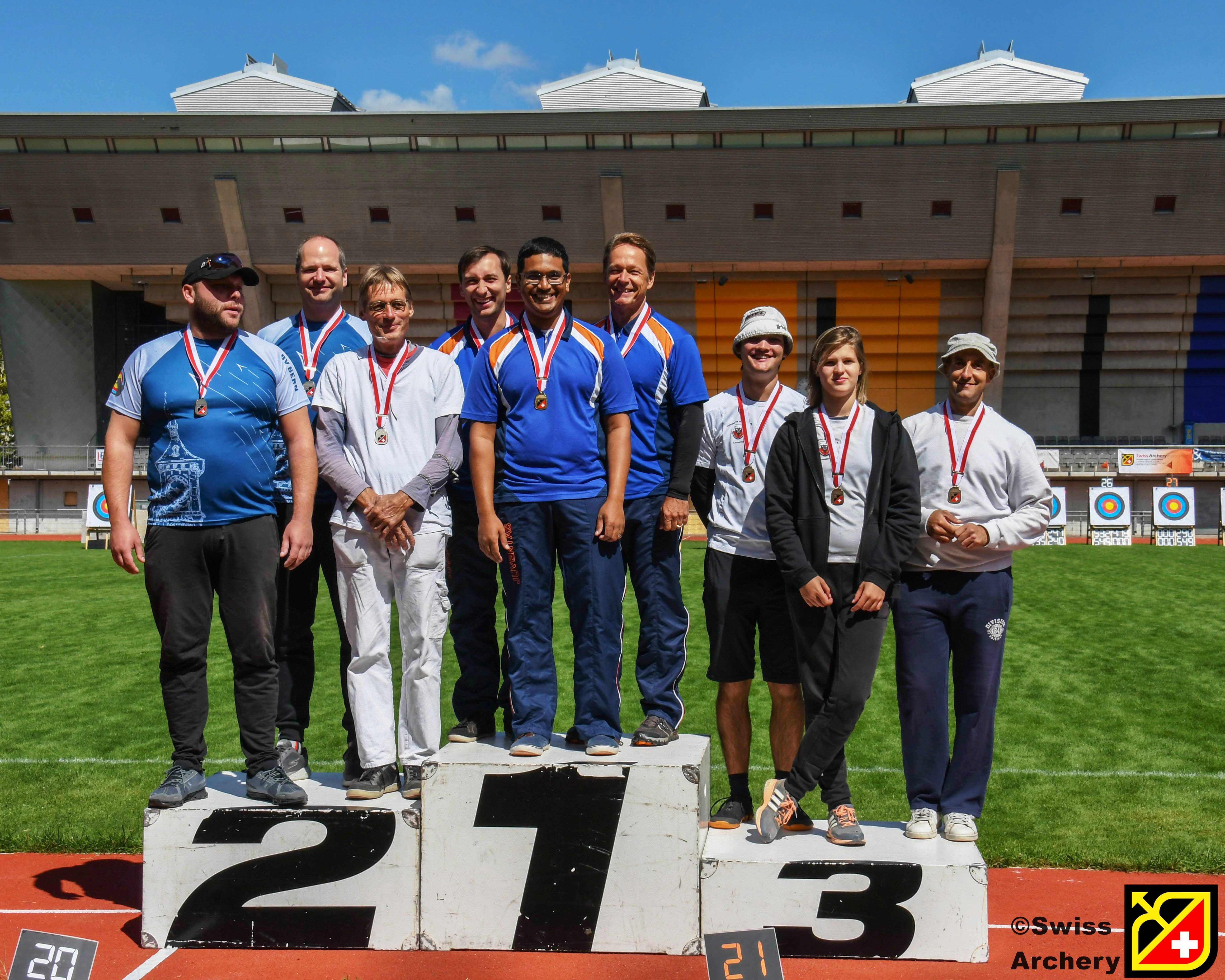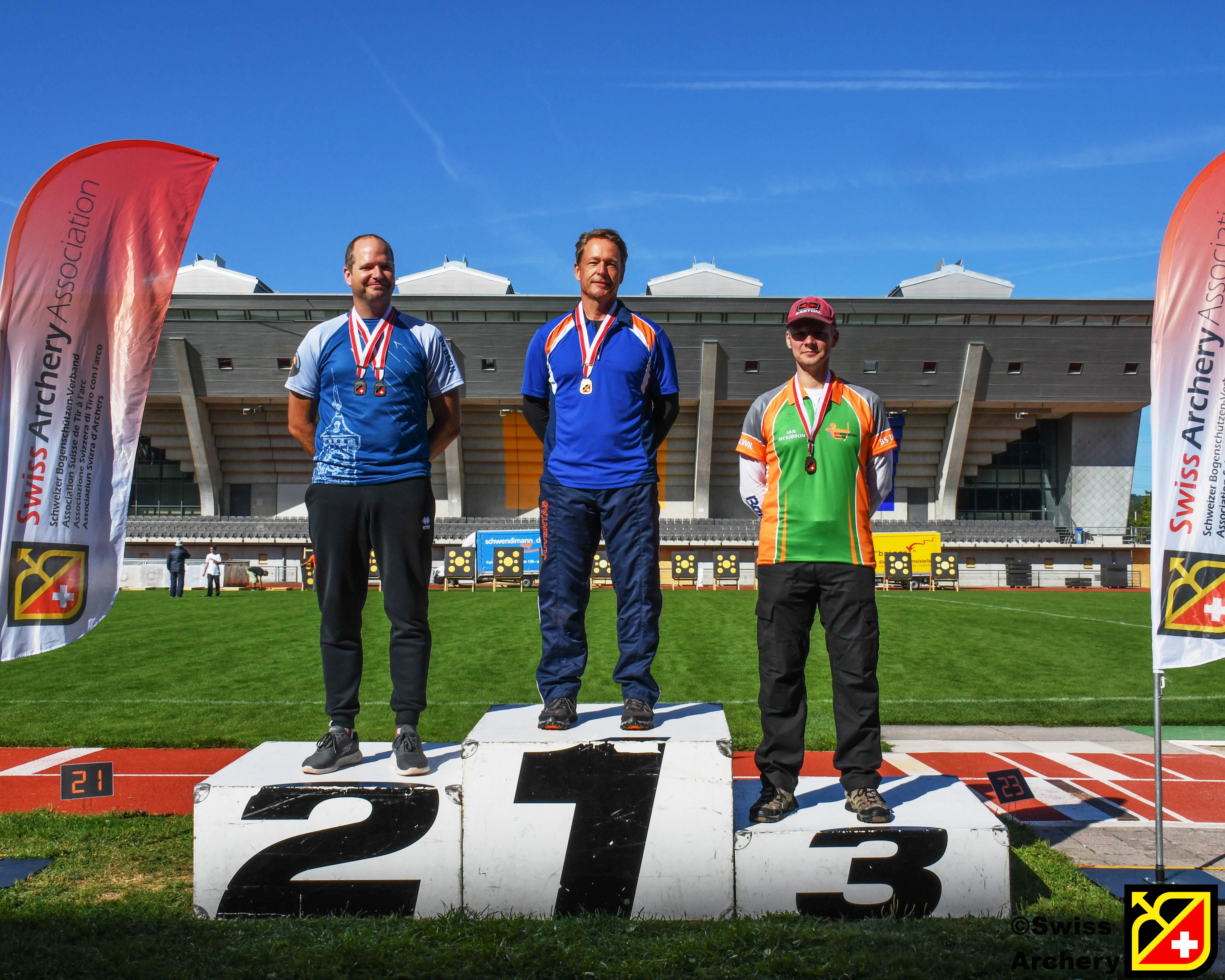 Marness Swart und Marco Petraglio schossen am Samstag für Juventas mit dem Compound Bogen in ihren Kategorien der über 50 Jährigen um die Medaillen mit. In der Qualifikation belegte Marness mit tollen 683 Punkten den ersten Platz, Marco folgte mit 675 auf Rang drei. In den KO Runden konnten sich beide bis in die 1/2-Finals durchsetzen. Während Marness seinen Match gewinnen konnte und in den Final einzog, hatte Marco trotzt konstant guter Leistung das Pech, dass seine Gegner jeweils gegen ihn die besten Runden des Tages schossen und musste sich mit dem undankbaren 4. Schlussrang begnügen. Marness konnte sich auch im Final gegen Walter Kreuter aus Bern durchsetzen und holte die erste Goldmedaille dieser SM für Juventas.